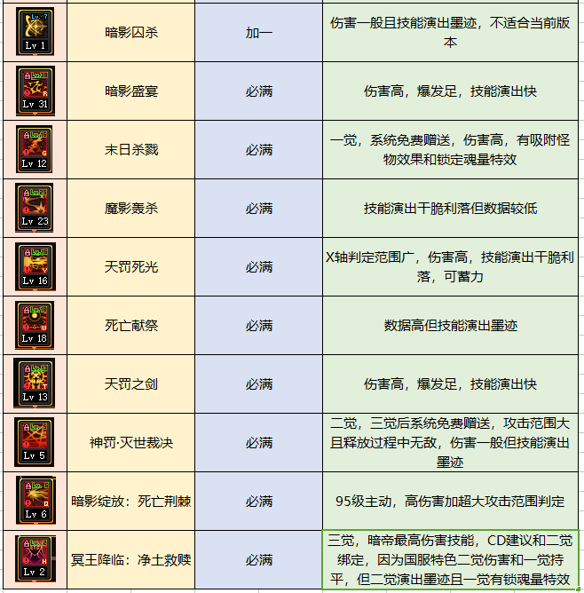 暗帝的主动技能基本上没有争议,大技能加满,最多在小技能上有一点取舍,如果暴击不够可以从小技能里面扣一部分出来优先满暴击。