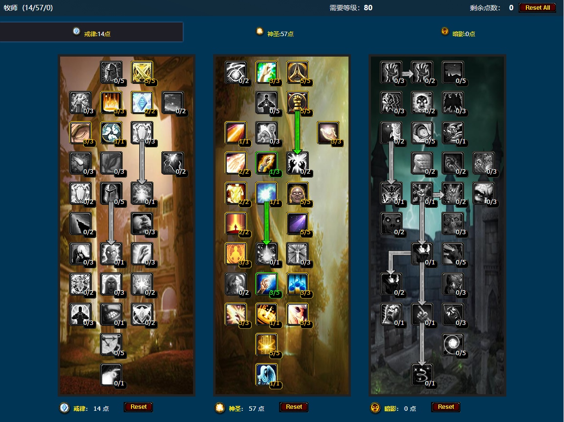 神牧的加点争议算上比较大的,这里给大家推荐的是14-57-0的加点方式,这算是一套标准的强疗天赋,非常适合团本打BOSS的时候单奶T,雕文方法,大雕文推荐快速治疗雕文、治疗之环雕文、恢复雕文。