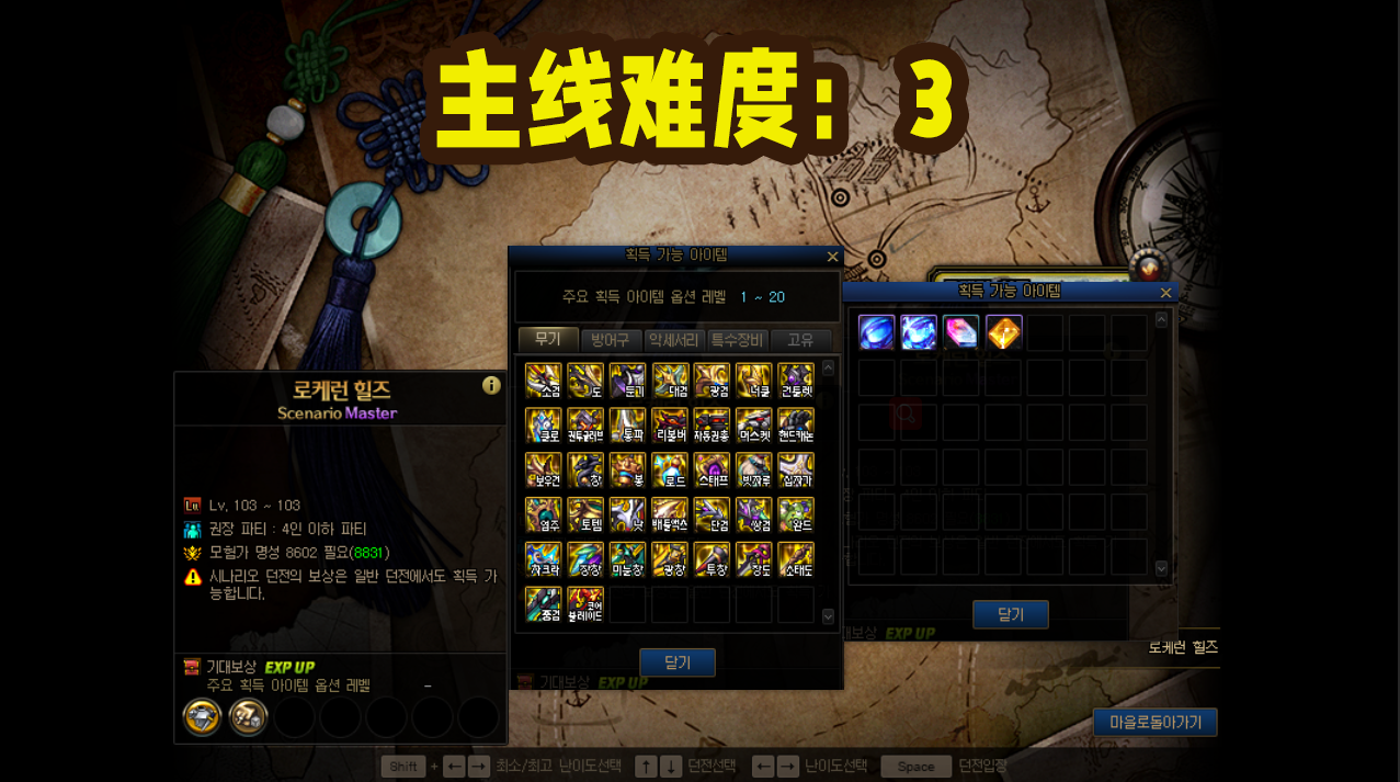 观看提示:韩服110版本,主线任务图共有4个难度选择。