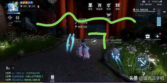 返回蛇岐八家,找到头顶有感叹号的“黑裙子”,走剧情,不太清楚“黑裙子”在哪可看看绿框里的大蛇,一般迷路了都是找标志性建筑,(补充一下最开始的跪坐动作在大蛇那里)
