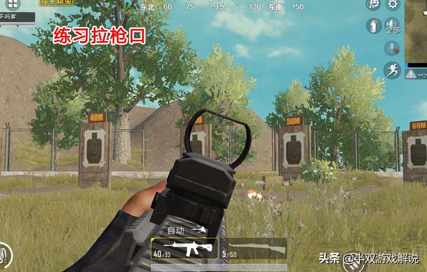 最后,练习拉枪口。在训练场里,选择两个相隔较远的靶子作为目标,从左往右再从右往左的扫射,来回的练习拉枪,在这过程中使用陀螺仪配合手指滑动。这一点在练习上可能有点难度,慢慢熟悉习惯就好了。