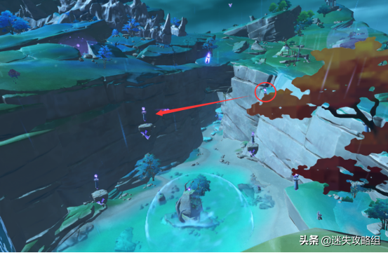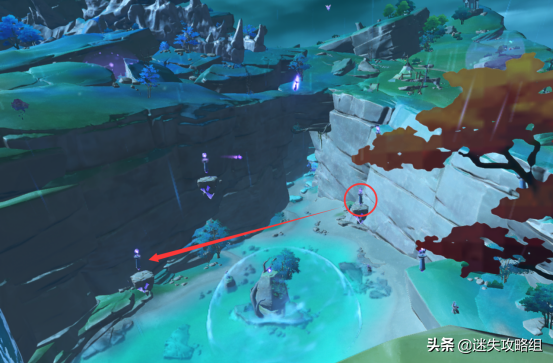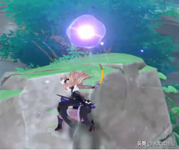 这里注意,这个雷法师是必定要打的,你打完之后,就可以靠这个雷种子来穿过屏障。但是,这个珠子是悬浮在半空中的。如果,你没有温迪、万叶、钟离+阿贝多这样的组合来制造一个可以升上去那珠子的角色,你就爬上边上的山坡,从山坡上飞进这个屏障里。(期间记得留意雷种子是不是还留在身上,毕竟有时间限制。)