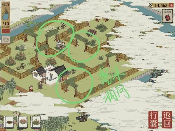 24.在三棵同心树上获取同心纸(碎石块×5,木料×15,朱砂石×4,体力-50)