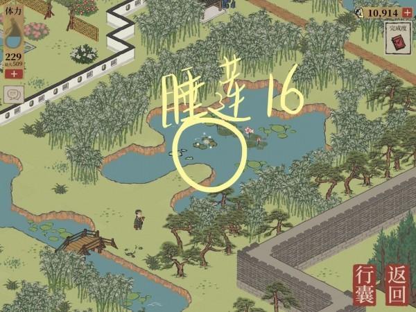 到这里就已经收集完所有的睡莲了,然后回去找家丁周叔