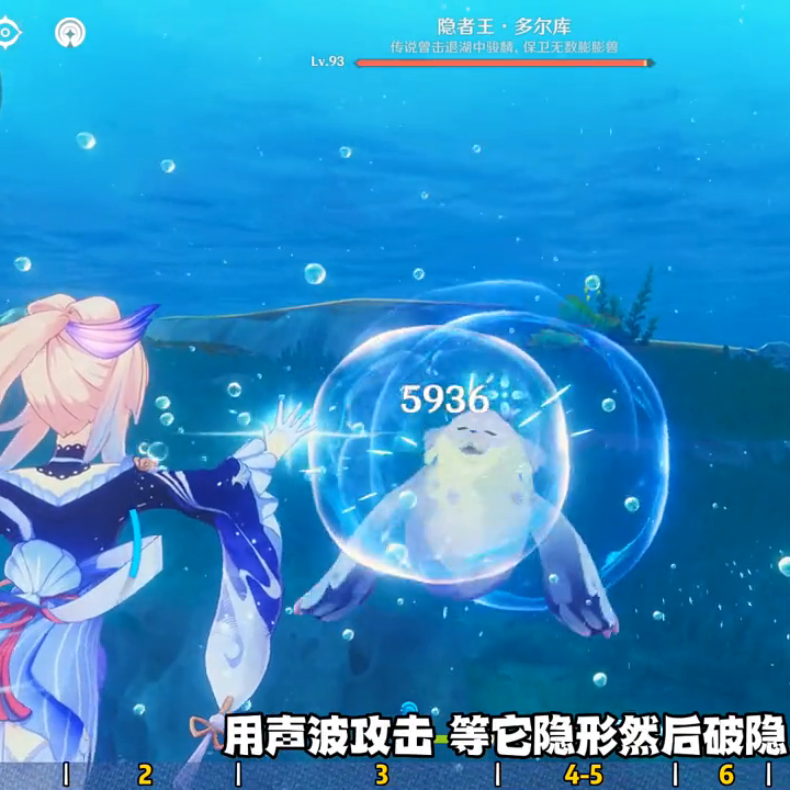 这个的打法是等它扔河豚攻击我们的时候,长按e技能等河豚砸中我们的一瞬间,将e技能发射出去会变成一个水炮造成超高伤害。它召唤护盾时也可以利用这招快速破盾。像这种旋转攻击只能快速躲避了,击败它拿到成就海底巡回法官和一珍贵宝箱。渐渐隐去的老兵来这个锚点,往前方游然后从前面的海沟潜下去,boss就在下面的叶子周围,先抽取一下附近海豹的能力,然后长按e技能使用声波攻击它。这个的难点在于海豹会突然隐形,然后从暗处释放水炮攻击你,这时候要观察水炮位置然后用声波把它给打显形,破隐形后就继续声波攻击,一直重复操作直到击败它,拿到成就渐渐隐去的老兵和一珍贵宝箱。湖畔的尼尼安涅位置在这,这个直接击败即可。推荐种门,boss血量在300w左右,尽量不要带班尼特打败它拿到成就湖畔的尼尼安涅。