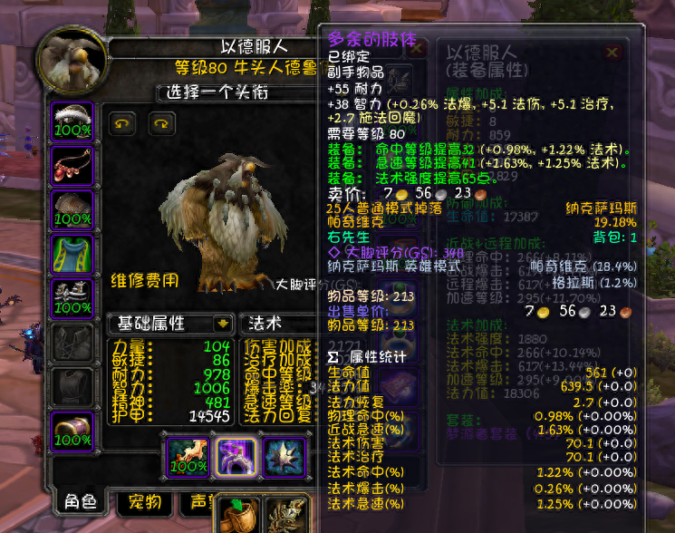 武器:鬼魅的召唤+多余的肢体,鬼魅的召唤是25人NAXX小怪掉落。