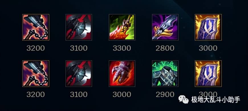 自家阵容没前排,自身抗伤压力非常大容易被集火时第三件可以出血手,之后补出绿甲/兰顿、死舞/冰刀/青龙刀等装备。血手和绿甲在上个版本获得了加强,低血量时提供的巨额护盾配合渴血更能抗住对面第一波爆发。