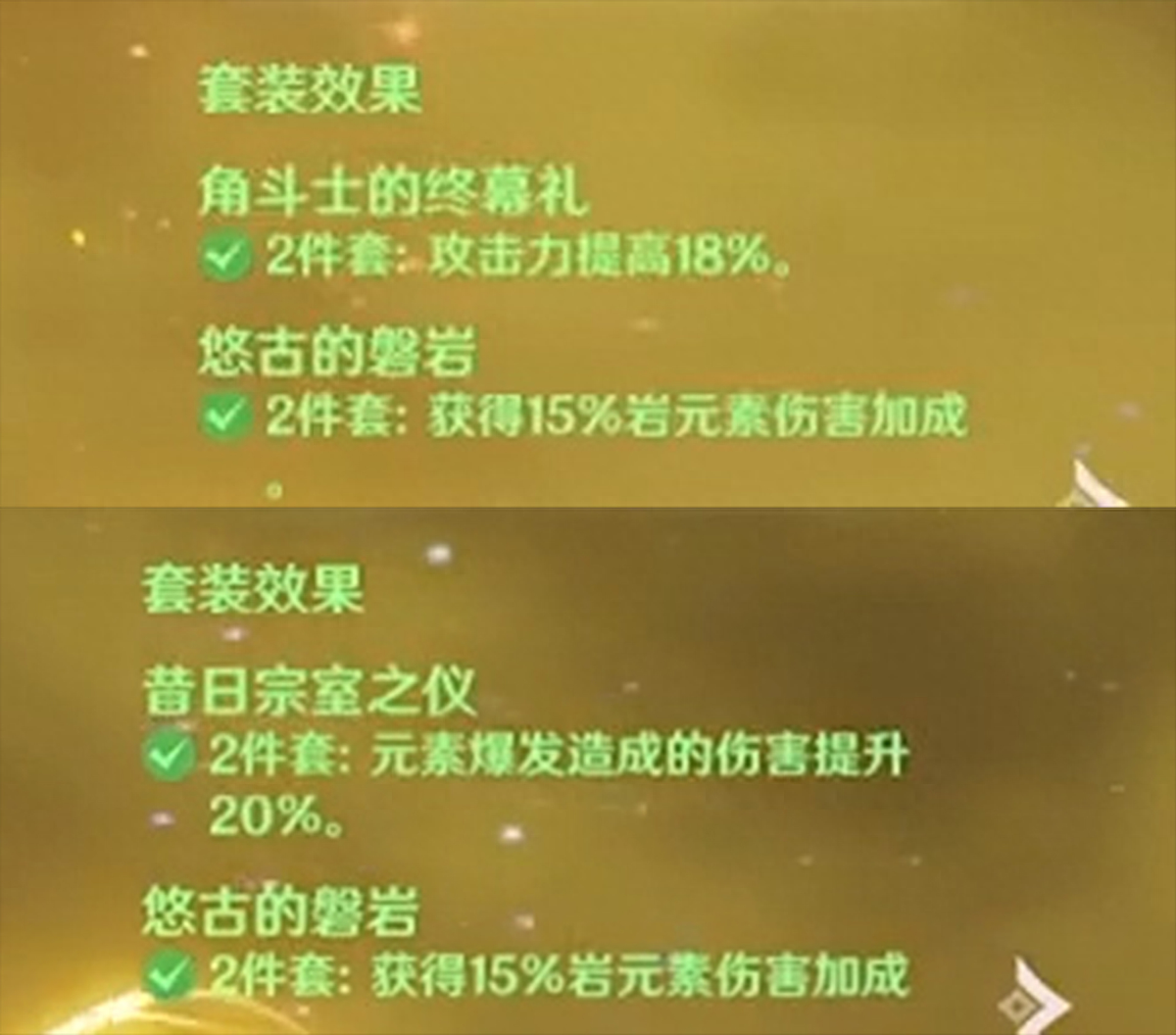 作为副C的话,推荐2攀岩+2角斗或是2攀岩+2宗室,放大招后重击切后台就可以了,主词条攻岩爆。