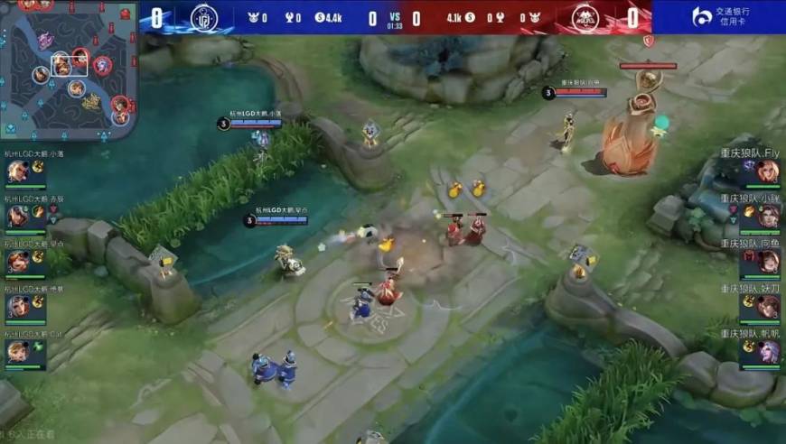 上图中,LGD的夏侯惇和狼队的赵怀真,在同一时间刷光了第一轮野区的6组野怪,值得一提的是,狼队的莱西奥有帮打蓝buff,也即是说,如果不考虑帮打的情况,那夏侯惇的刷野效率比赵怀真还要快一点。