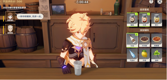 最后是关于酒保挑战的,酒保活动想要拿满奖励是很简单的,这次的任务真没什么难度,只需要评分达到五百分就能拿满奖励,懒鬼们可以拿到五百分直接挂机等结束,没必要一直赶着做,至于这种特殊要求,拿图片里的晚钟举例,她要奶多一点就在辅料里多加一份奶即可,别傻乎乎得只知道按照原来的配方做,那肯定是不行的。