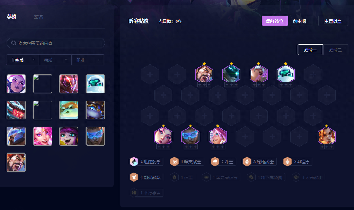 五人口搭配羁绊为:3混沌战士+2迅捷射手,或者3混沌战士+2AI程序