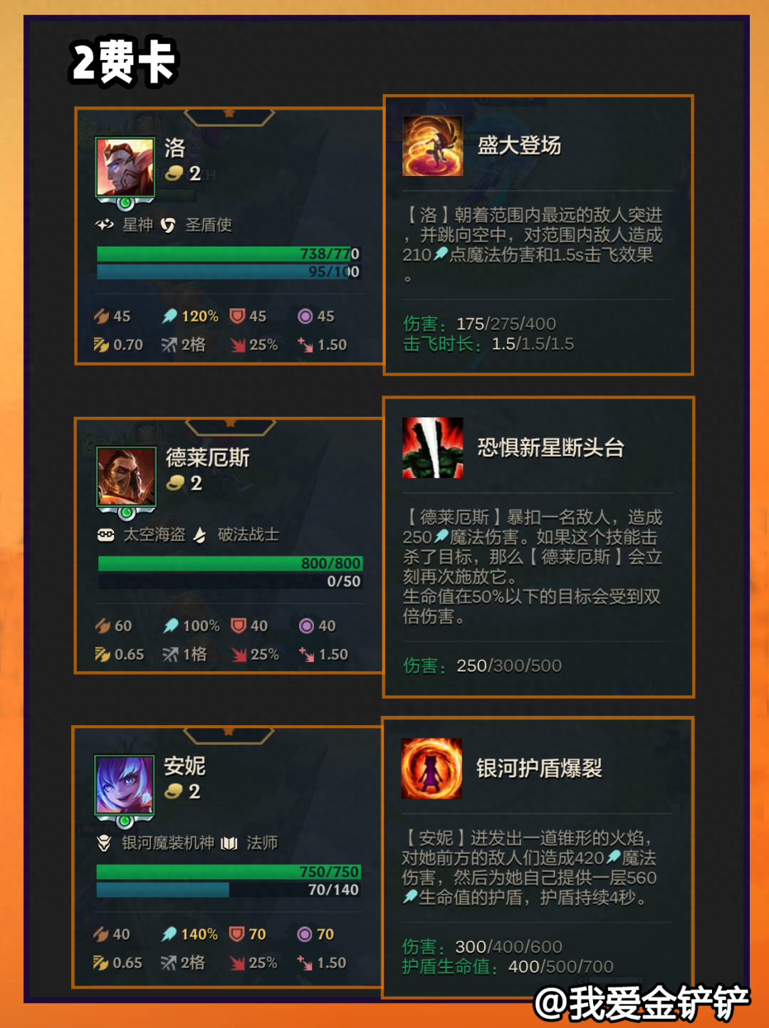 【奥德赛】:为邻格提供护盾值和额外伤害。【暗星】:友军阵亡获得加成。【法师】:为所有友方提供法强。【斗士】获得额外数值生命值。