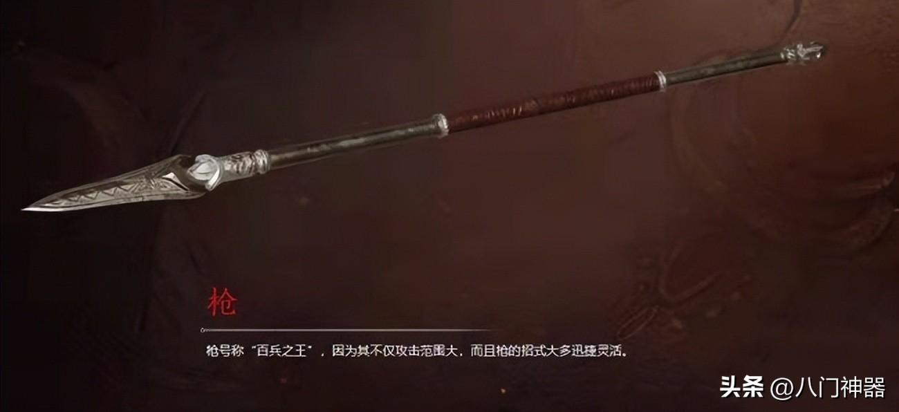 1、枪:枪号称“百兵之王”,因为这个款武器的攻击范围是非常大的,而且枪的招式都比较的迅捷灵活。