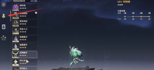 3、在图鉴中找到不是最高品质的声骸,将它刷到品质最高就可以获得大量葫芦经验。