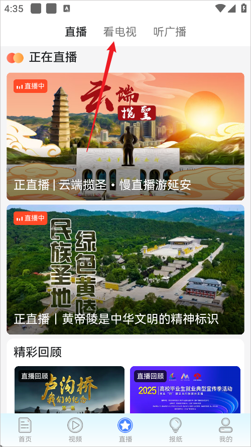 2、然后选择上面的看电视