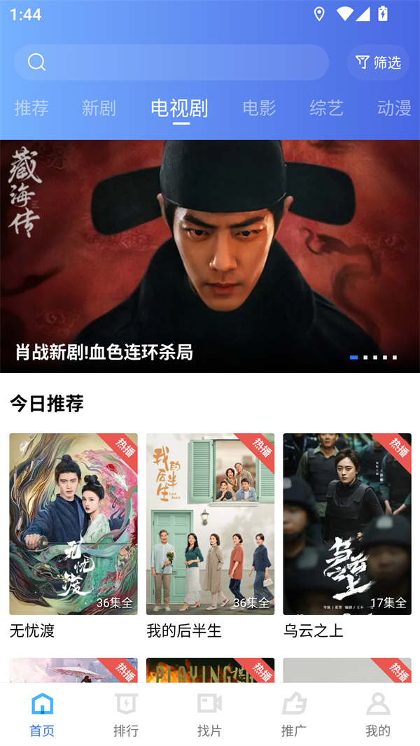 1、首先在本站下载并安装大地视频追剧,安装完成后打开app进入到主界面。
