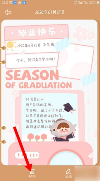 6、编辑完成后可以保存也可以分享,把记录下来的日记发布给好友或是留作个人日常记录。