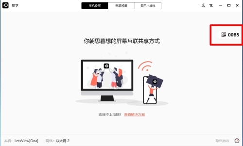 将手机与电脑连接同一个WiFi,如果你不能确定你的手机和电脑是否在同一个WiFi网络,参考这个检测一下。打开电脑端幕享,点开屏幕右边隐藏的投屏码页面,找到电脑上显示的投屏码。
