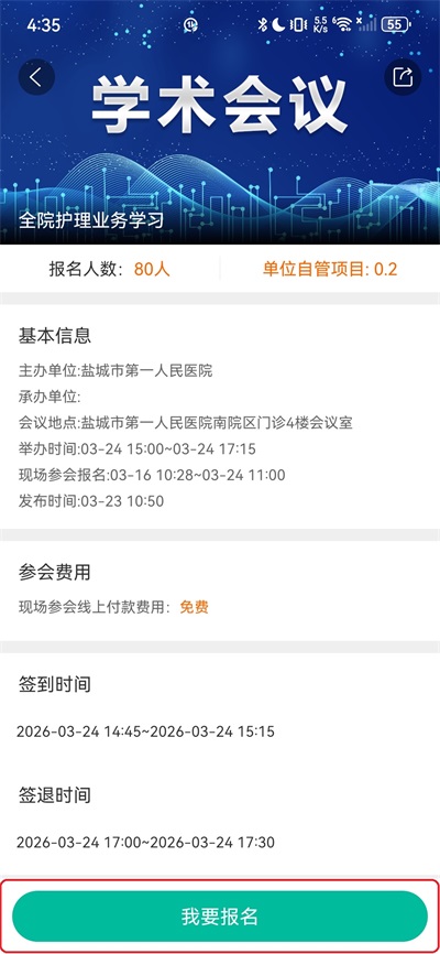 健康盐城APP学术会议报名参与方法