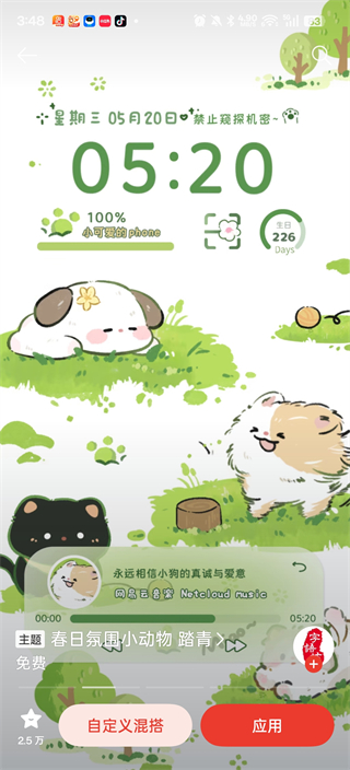 3、OPPO主题商店App不仅支持自定义混搭不同的主题元素,还可以选择直接应用你下载的壁纸,轻松完成个性化设置。