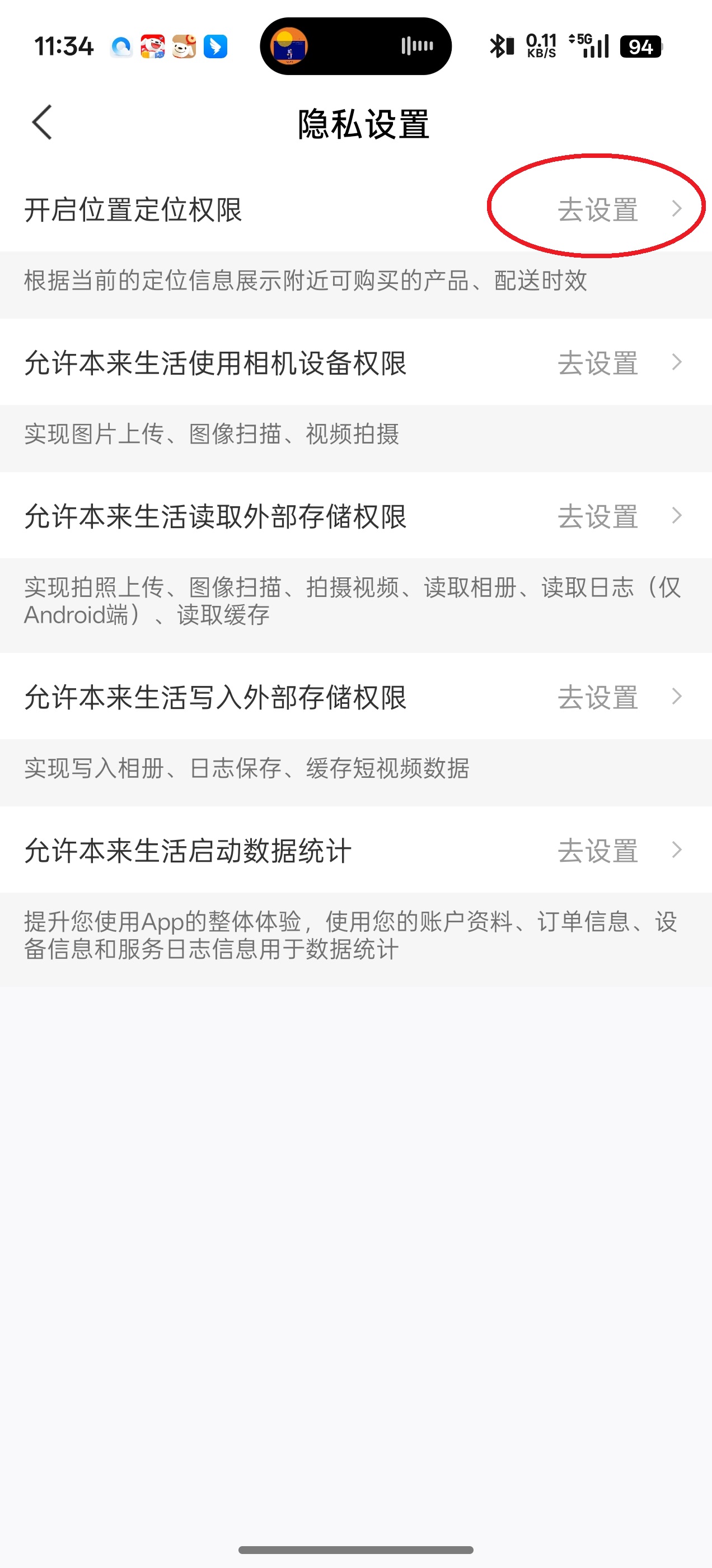 4、随后点击“开启位置定位权限”对应的“去设置”。