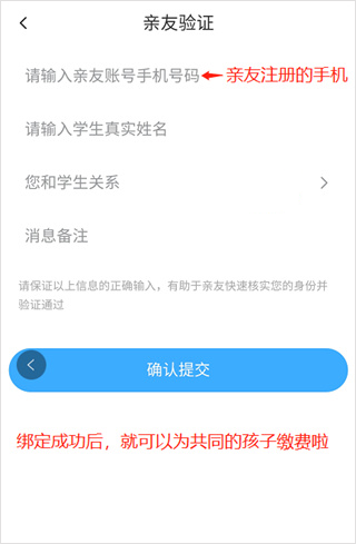 5、按照提示填写亲友的相关信息,提交绑定申请。