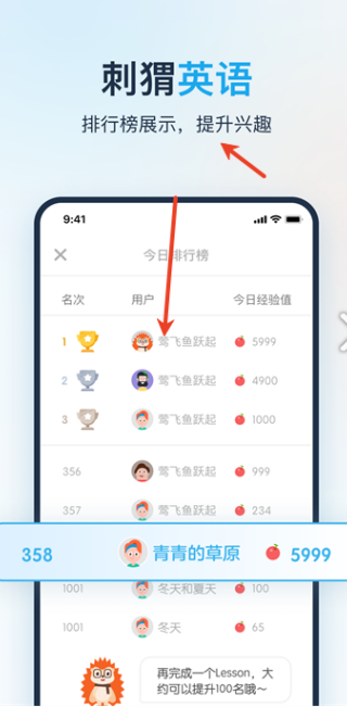 4、每周都会有排行榜展示的,能够刺激大家的英语积极性;
