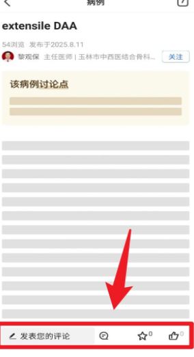 4、打开病例详情页后,可以查看讨论要点,并在底部输入框中直接发表评论,参与互动交流。
