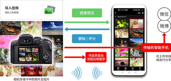 导入智能手机的照片和短片,可以直接发到常用的社交应用程序上进行分享。佳能远摄镜头拍出的大特写,广角镜头拍摄的壮阔风景,还有大光圈镜头拍出的大虚化人像等高品质照片,让社交分享的照片更具魅力,更有品位。