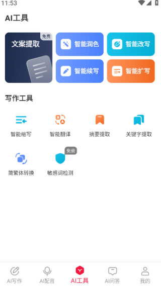 4、各种使用的ai工具为用户们提供,支持文案提取,智能写作等。