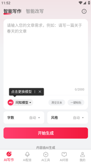 2、提供智能ai写作服务,在线输入您的文章需求系统为您快速生成。