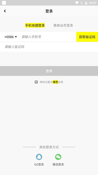 4、点击登录/注册,根据自己情况可以选择号码以及qq、微信