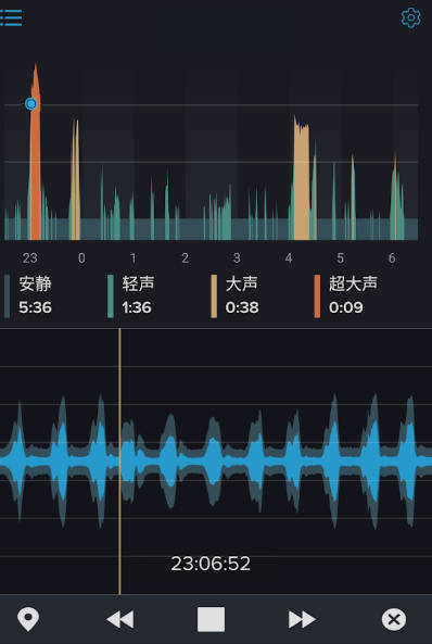 2、来到结果页面后可以看到你所记录的鼾声全部时间段的频率。