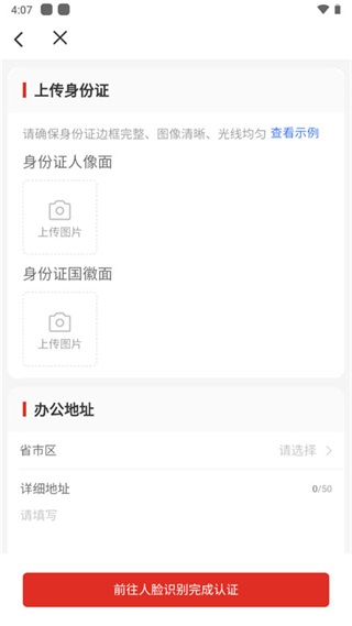 4、上传身份信息并进行认证即可。