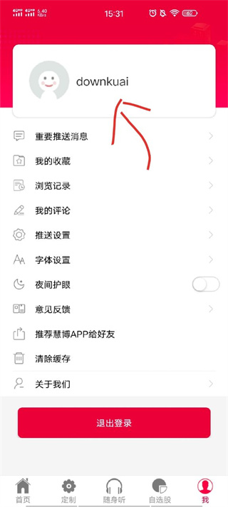 3、在“我的”界面中,点击字体设置;