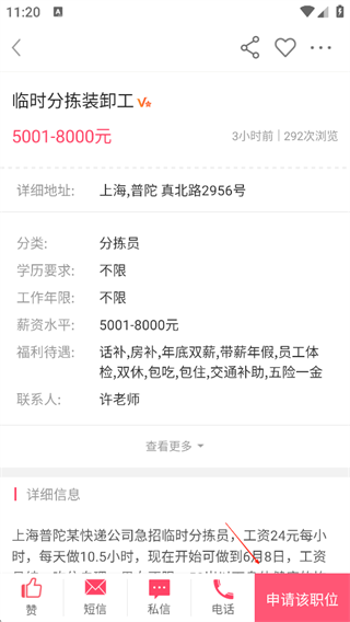 4、可以先私聊或者打电话了解一下这个岗位在申请改职位