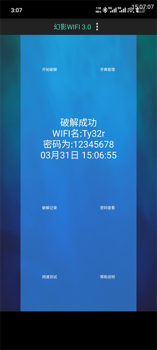 6、破解成功,清晰展示 WiFi 名称、破解出的密码及破解时间,可在「密码查看」中随时回顾已破解的密码。