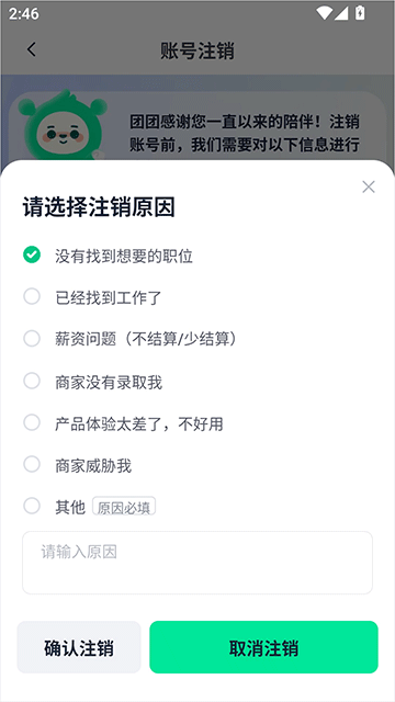 5、选择注销原因,选好以后点击“确认注销”