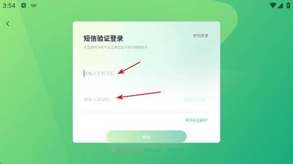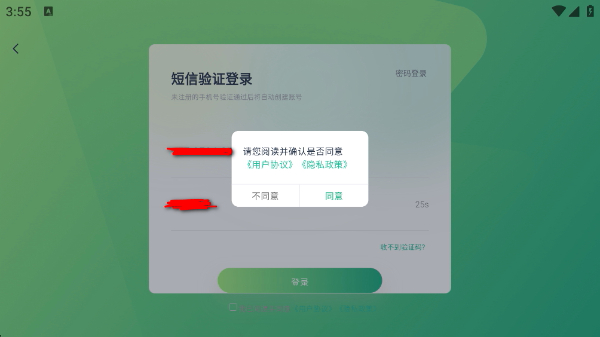 3、输入好手机号码和验证码后点击登录,再点击同意用户协议。