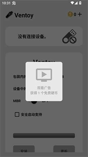 打开App:进入Ventoy界面,你会看到页面上方显示了检测到的U盘信息。