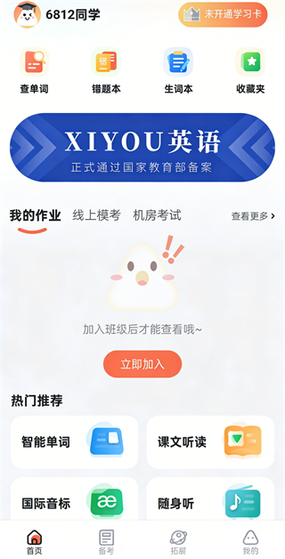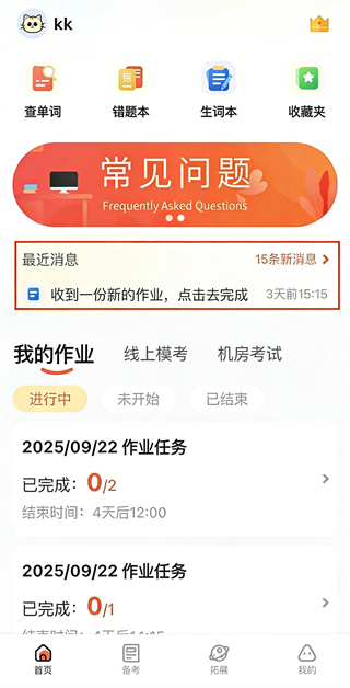 3、加入班级后,就可以看到老师布置的作业和考试任务。