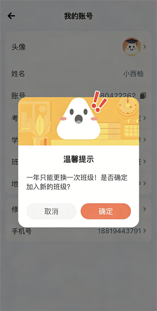 3、一年只能更换一次班级哦!