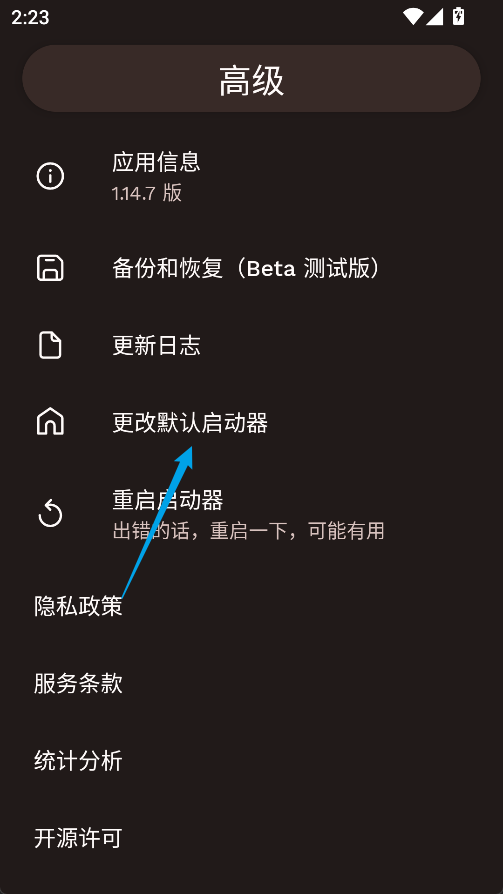 4、选择更改默认启动器