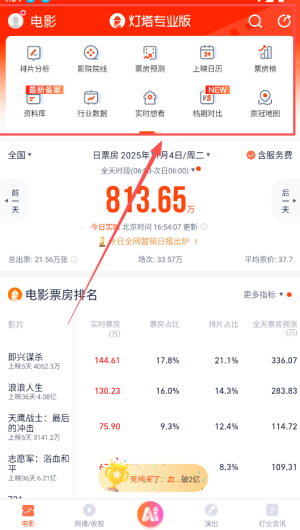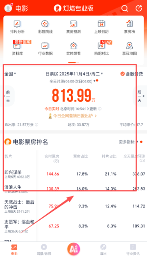灯塔专业版是阿里影业推出的权威影视行业数据平台,整合阿里海量用户数据资源,提供秒级实时票房、精准排片分析及全网热度监测,深度覆盖电影、剧集及演出市场,融合AI智能预测与舆情分析,为行业人士及影迷提供透明、专业的决策参考依据,秒级实时票房,数据延迟极低,精准掌握大盘走势与单片表现,支持分时段查询。