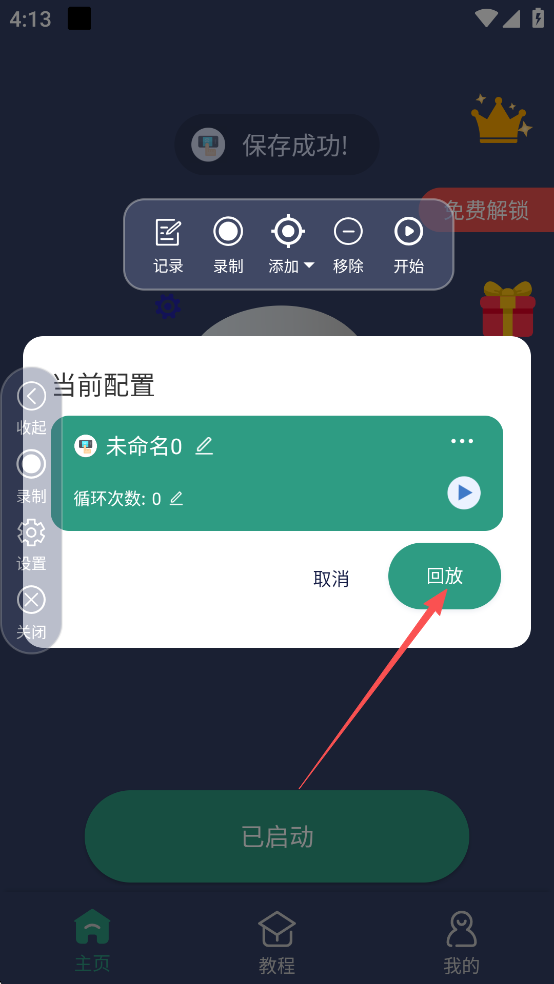 3、开启后开始录制手势
