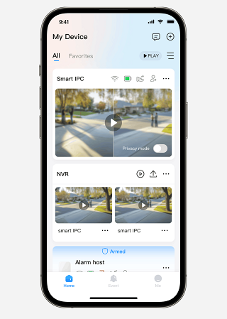 您可以随时随地查看添加设备的实时监控视频,帮助您更好地监控家庭环境的安全。