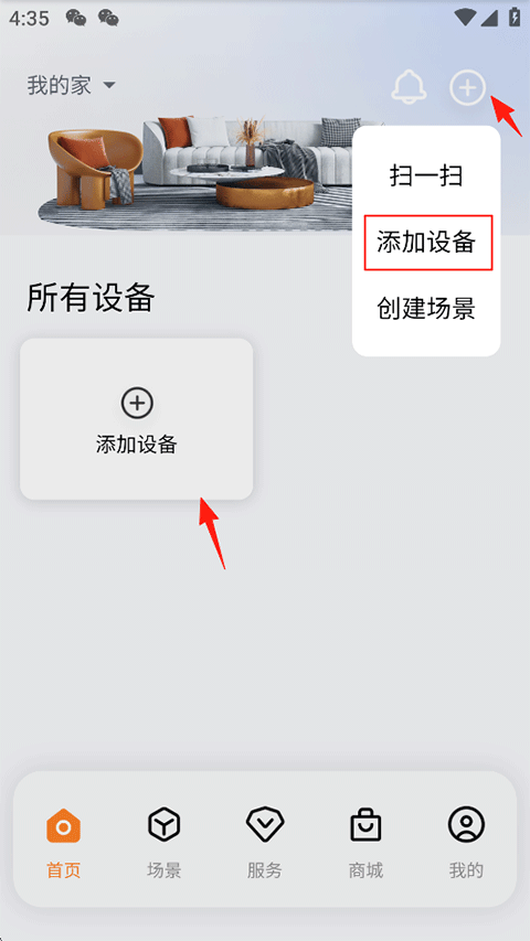 3、扫码添加:通过扫描设备上的二维码来完成连接;