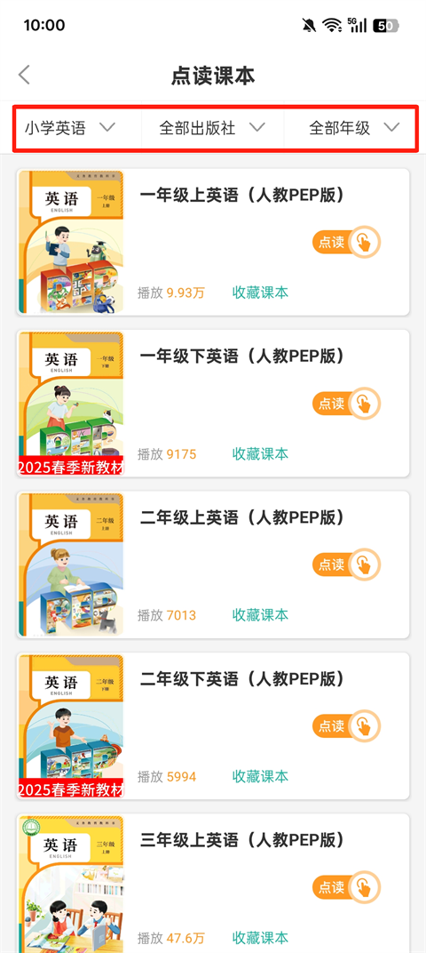 2、根据年级、出版社等进行筛选切换