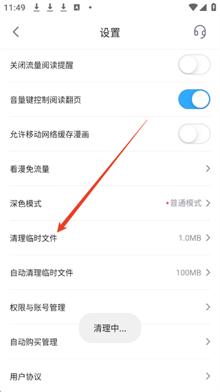 2、点击其中的清理临时文件就可以清除看漫画的缓存了。