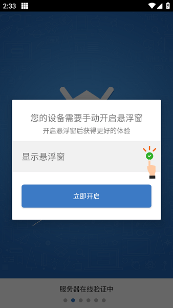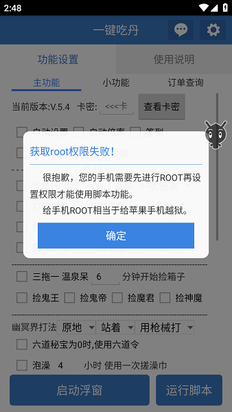 1、打开一键吃丹脚本后,会有权限的提示,授权悬浮窗权限;